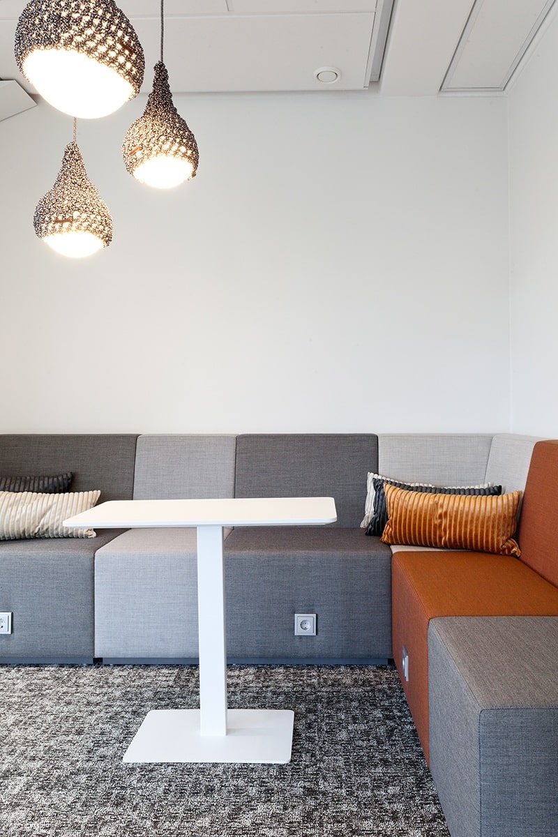 This time, a particularly elegant POINT couch catches the attention at the newly reconfigured Helsinki office of an internationally operating financial services company that wishes to remain anonymous. Made of neutral greys and one bronze-colored accent module, the couch, coupled with a small TOP table, welcomes one to entertain guests, forge business or simply enjoy a quiet moment in the see-through corner office.