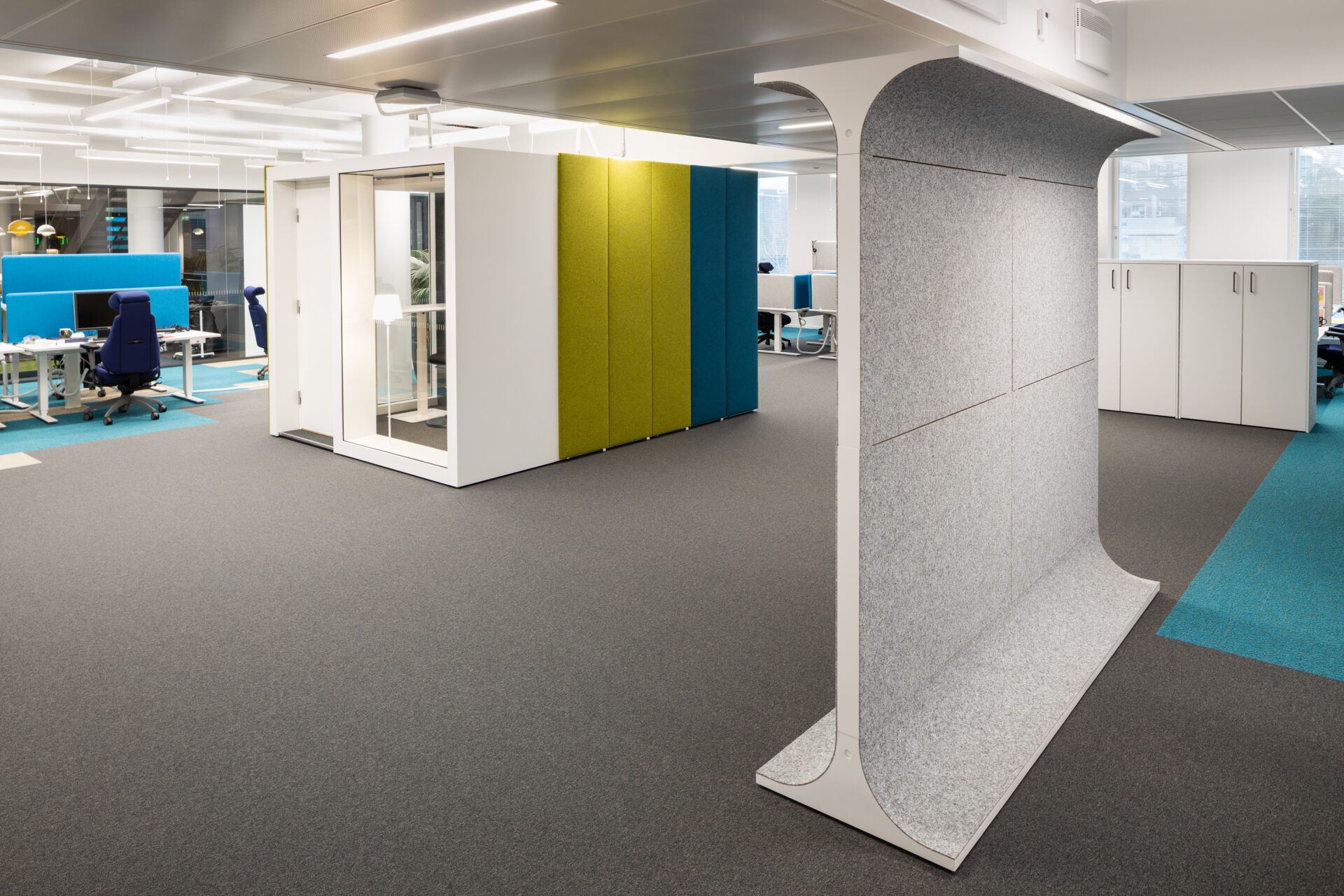 – Yritystoimistot – Optimoi tilankäyttöä, parantaa akustiikkaa ja tukee keskittymistä avokonttoreissa.