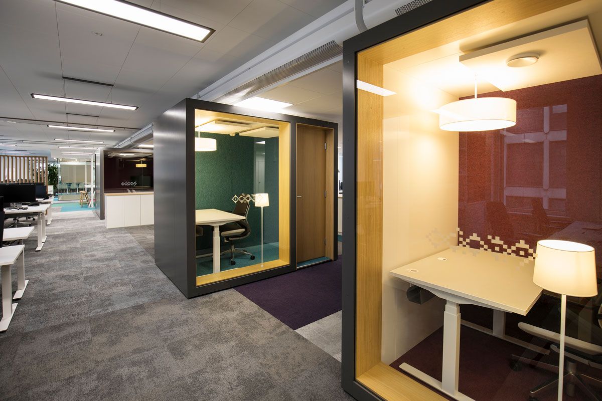 Ääntä vaimentavia, ergonomisia POINT sohvia on sijoitettu sekä neuvotteluhuoneisiin että taukotiloihin, joissa ne muodostavat seurusteluun kutsuvia istumaryhmiä. Yhteisöllisissä tiloissa on myös helposti siirrettäviä, vaimennuselementein varusteltuja puoliavoimia POD ROLL tiimityötiloja. Työpisteiden läheisyyteen taas on sijoitettu tukitiloiksi modulaarisia INTO POD -huoneita, jotka tarjoavat rauhaisat puitteet niin keskittymistä vaativaan työskentelyyn kuin neuvotteluihin.