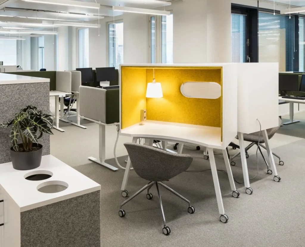 Yksityiseen työskentelyyn tarkoitetut työpisteemme tarjoavat rauhallisen tilan keskittymistä vaativaan työskentelyyn. Työpisteemme lisäävät tilan monikäyttöisyyttä ja sopivat tilaan kuin tilaan aina aulatiloista toimistotiloihin ja oppimisympäristöihin.