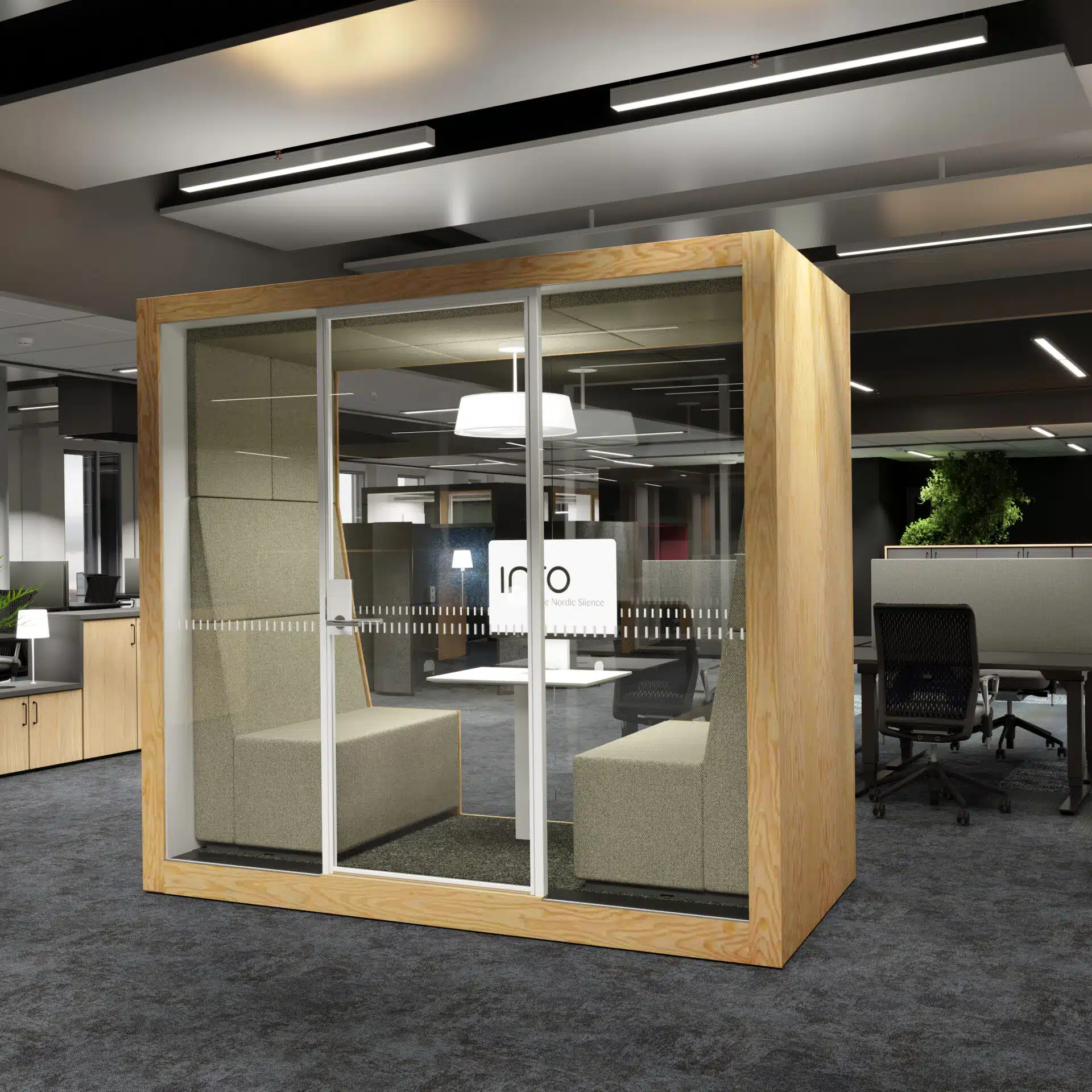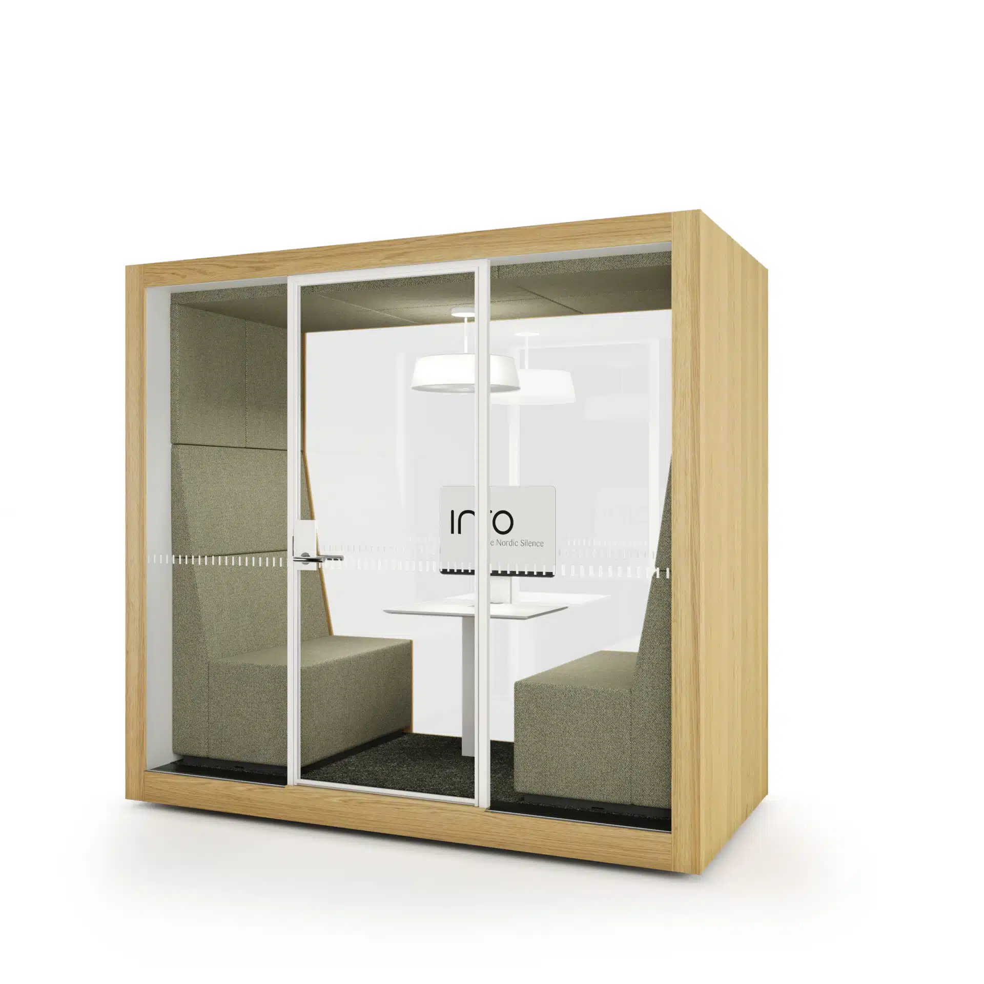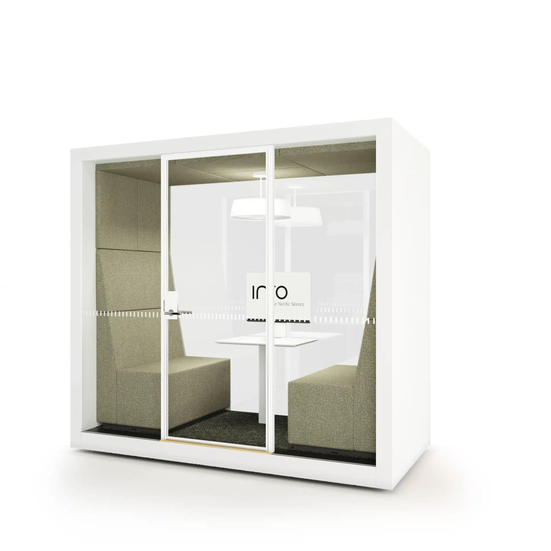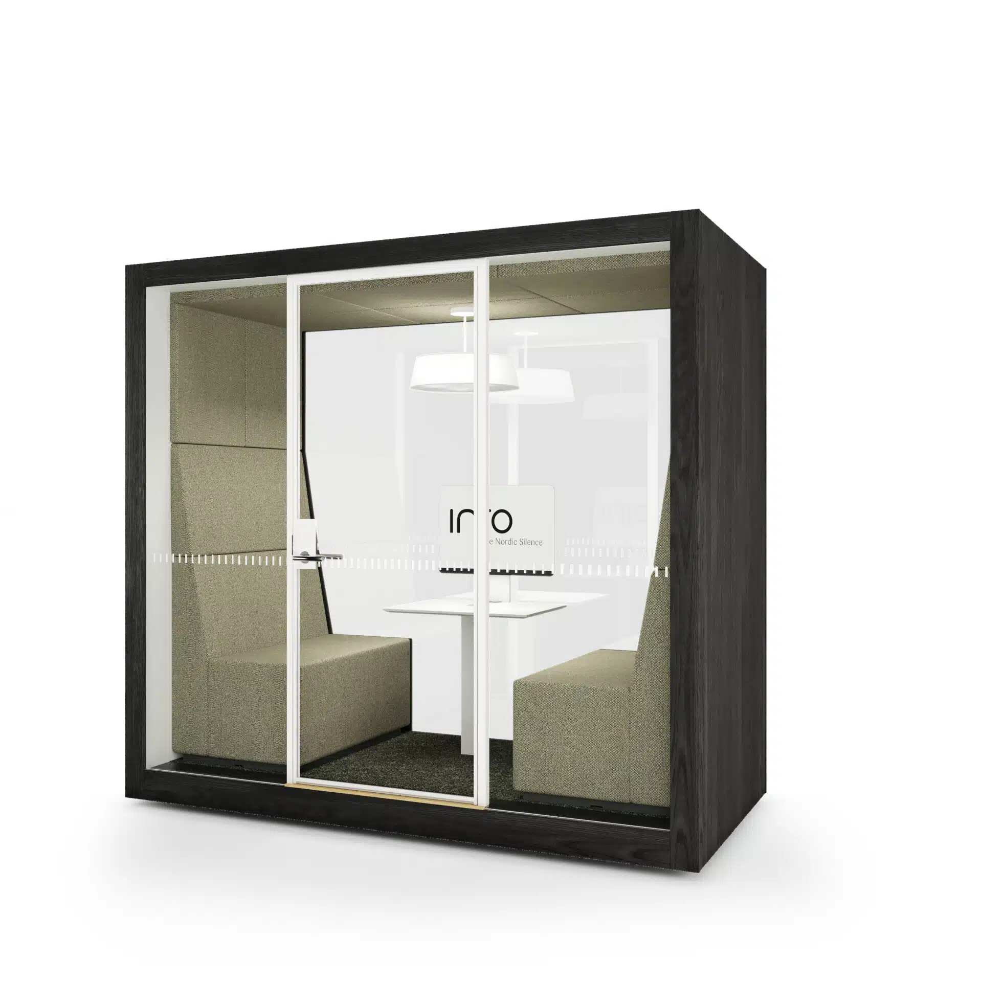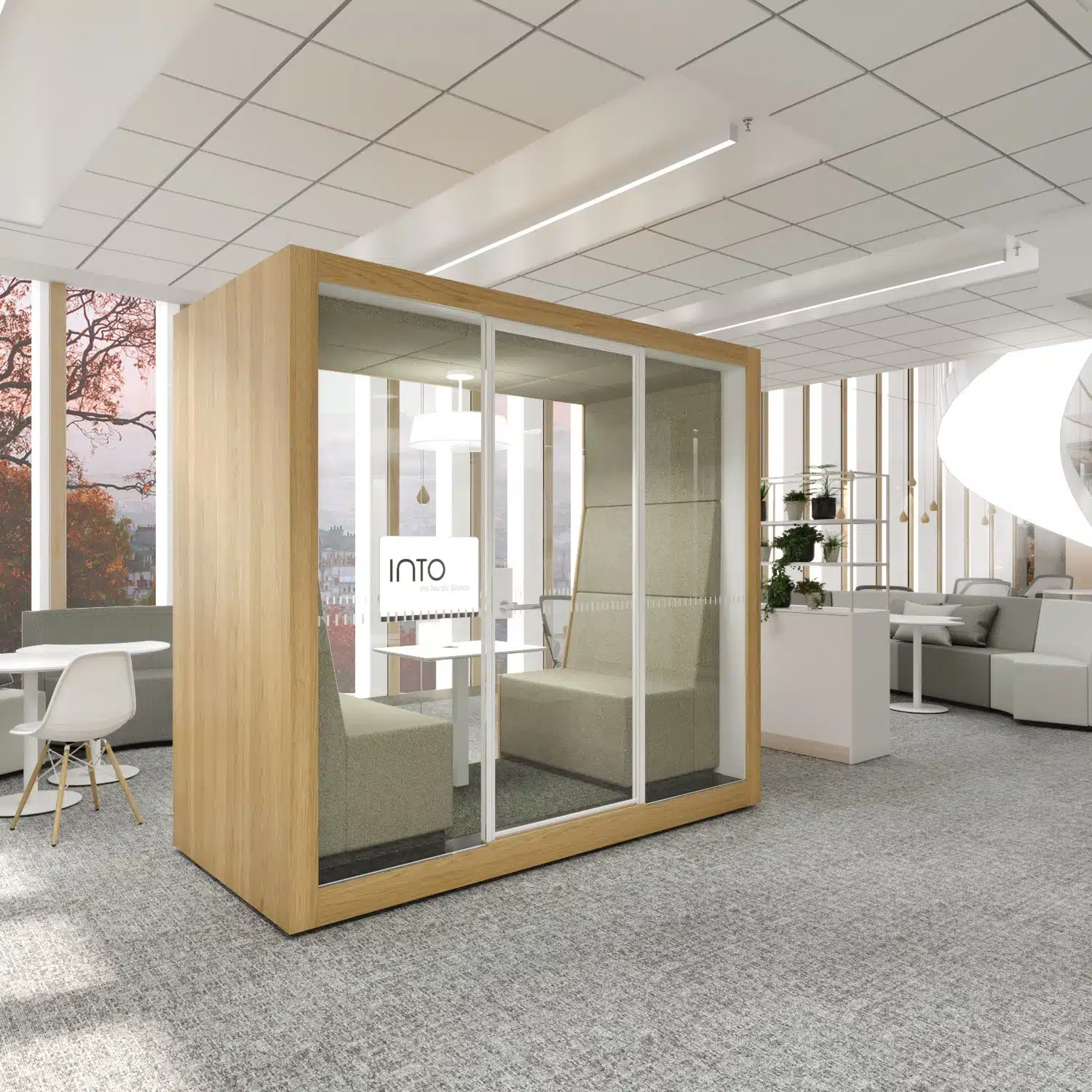 POD ROLL GLASS SMALL on kompakti äänieristetty työtila 1-2 henkilölle spontaaneihin kokouksiin ja itsenäiseen työskentelyyn. Se on pyörillä varustettu työtila, jonka ansiosta sitä voidaan siirtää ja kääntää vaivattomasti tilatarpeiden muuttuessa.